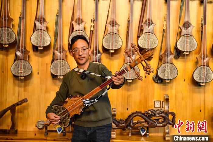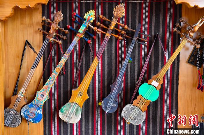 6月14日,記者走進(jìn)西藏自治區(qū)日喀則市拉孜縣熱薩鄉(xiāng),探訪中國國家級非物質(zhì)文化遺產(chǎn)“扎念琴制作技藝”的具體制作過程。扎念琴,又名六弦琴,是西藏傳統(tǒng)歌舞“堆諧”中最常用的彈撥樂器。扎念,藏語意為“悅耳動聽之聲”。在西藏,扎念琴深受廣大群眾喜愛。2014年,“扎念琴制作技藝”入選第四批中國國家級非物質(zhì)文化遺產(chǎn)代表性項目名錄。據(jù)了解,扎念琴制作共有5道基本程序:第一步,將整根木材掏空,做成共鳴箱;第二步,制作中間空心的琴桿,裝上名為“卡杺”的面板;第三步,雕刻“馬頭”或“龍頭”形狀的琴頭,安裝在琴桿頂部;第四步,制作附在琴頭、呈半圓形、向后彎曲且中間開有弦槽的扎念弦軸。最后一步,挑選羊腸、牛筋、絲線等不同材料來制作琴弦。扎念琴制作技藝的特別之處在于,為了琴身的美觀,初制后還要通過雕刻馬頭、龍頭、火焰等形狀作為裝飾,讓扎念琴更具特色。圖為制作完成的扎念琴。貢確 攝
