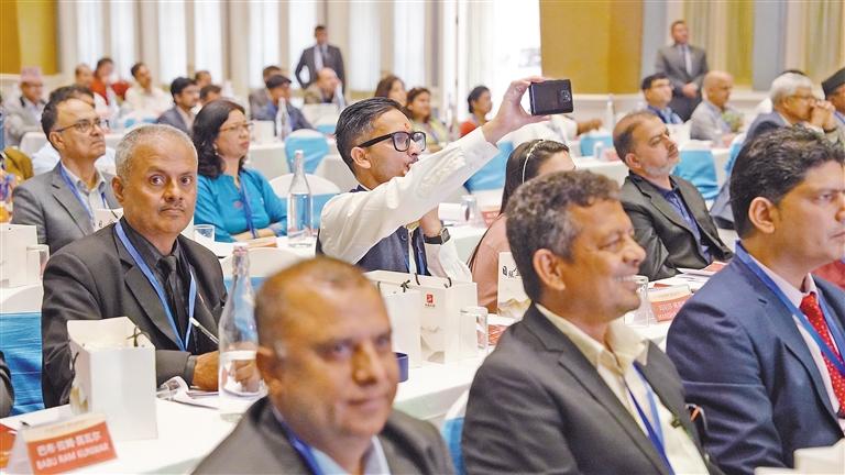 參加活動的尼泊爾嘉賓在會場拍攝。