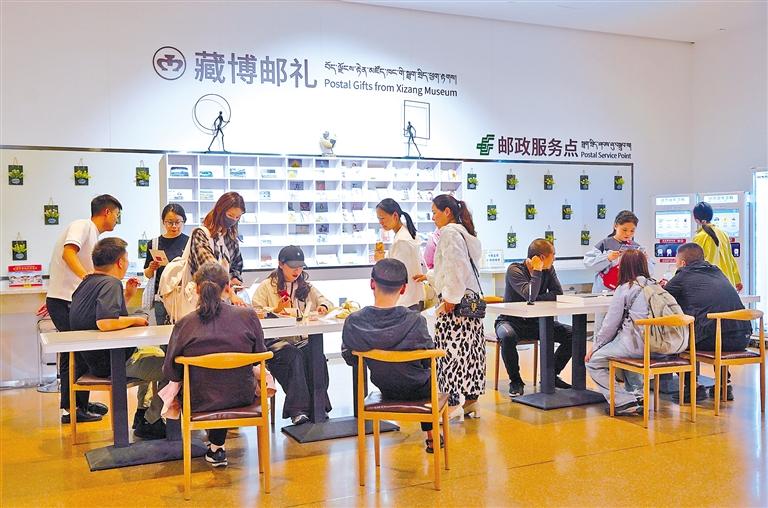 據西藏博物館文創(chuàng)中心相關負責人介紹,該服務點的創(chuàng)新優(yōu)勢體現在兩個維度:在服務流程上,游客選購明信片、郵折等60余款主題文創(chuàng)產品后,可直接在館內完成寄遞全流程,免去往返郵政網點的奔波;在服務深度上,現場配備專業(yè)人員提供從郵寄方式選擇、資費計算到郵編查詢的“一站式”指導,確保文化傳遞的便捷體驗。數據顯示,自“一站式”寄遞服務開通以來,主題文創(chuàng)產品銷量顯著增長,這些承載著文物故事、高原風情與人文溫度的創(chuàng)意載體,正逐步成為博物館“帶得走的文化符號”。