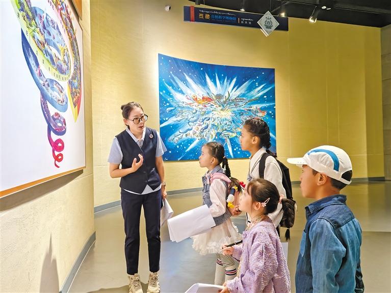 圖為西藏自然科學(xué)博物館工作人員為參加活動(dòng)的孩子們作現(xiàn)場(chǎng)講解。記者 楊小娟 攝