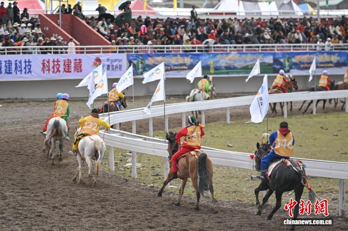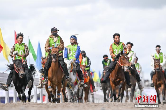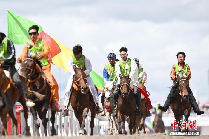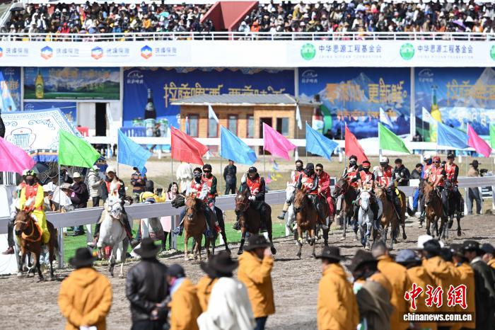 9月6日,西藏自治區(qū)那曲市恰青賽馬節(jié)進(jìn)入第二天,格薩爾賽馬場(chǎng)賽事精彩不斷。場(chǎng)內(nèi),1.38米以下小馬展開10000米速跑、10000米走馬、12000米走馬決賽,1.38米以上1.45米以下大馬角逐10000米速跑決賽。為觀眾帶來速度與耐力的草原盛宴,盡顯藏北草原賽馬文化的獨(dú)特魅力。圖為1.38米以上1.45米以下大馬速度賽比賽現(xiàn)場(chǎng)。中新社記者 貢嘎來松 攝