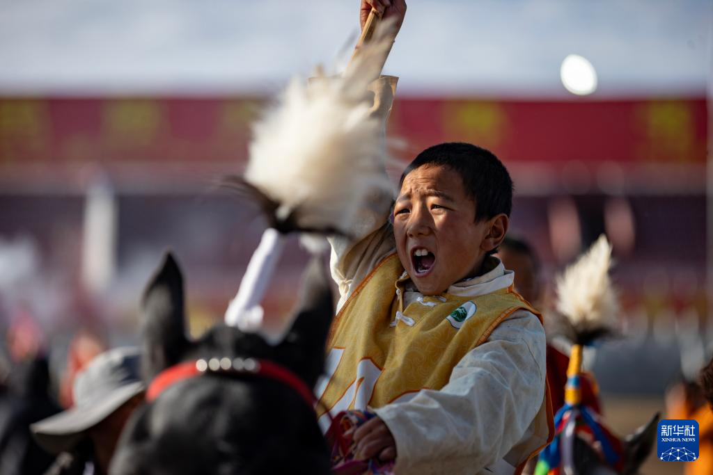 9月7日,騎手們在傳統(tǒng)大跑項(xiàng)目前的傳統(tǒng)煨?;顒又衅砀?。新華社記者 姜帆 攝