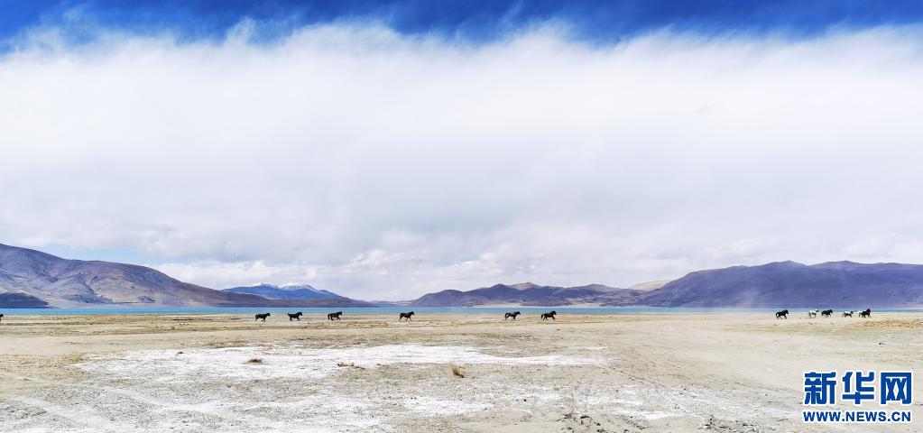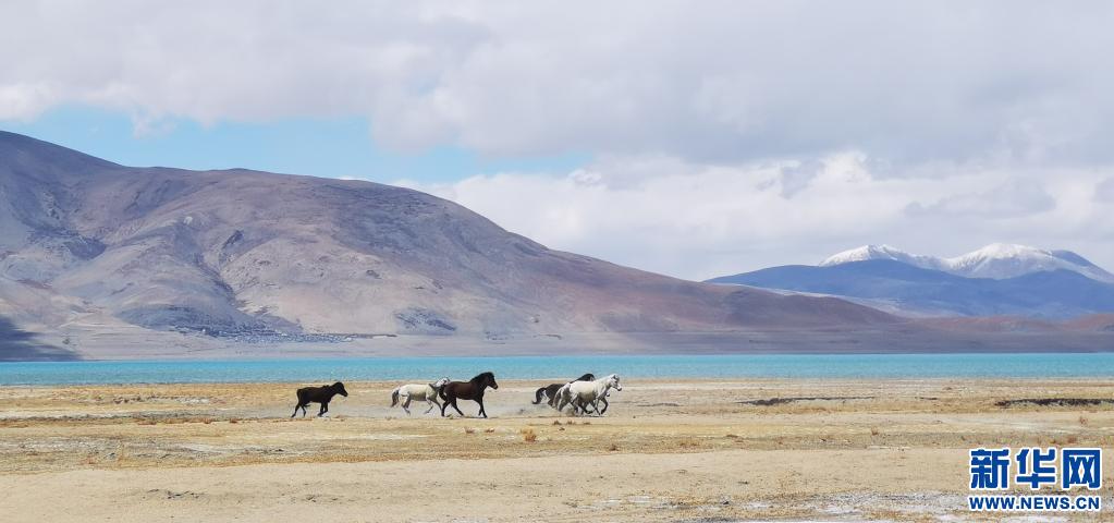 野馬在佩枯錯(cuò)旁奔馳(5月14日攝)。新華社記者 孫瑞博 攝