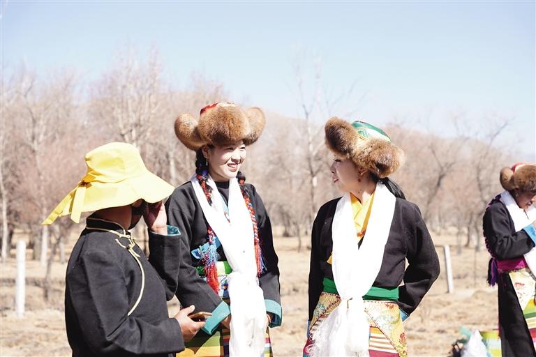 在巴嘎雪村,村民們早早地在田間等待著儀式的舉行。巴嘎雪村二組的旦巴曲桑說:“這是我第三次參加春播儀式,我們在舉行開耕儀式的前幾天,家家戶戶都要釀造青稞酒,還要給‘鐵牛’準備裝飾品。在春播儀式開始的這一天,全家人都穿上節(jié)日盛裝,并將耕牛和拖拉機也打扮得漂漂亮亮的,祈求五谷豐登?!?/p>