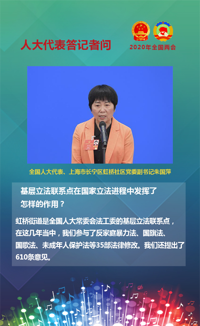 虹橋街道是全國人大常委會法工委的基層立法聯(lián)系點(diǎn),在這幾年當(dāng)中,我們參與了反家庭暴力法、國旗法、國歌法、未成年人保護(hù)法等35部法律修改。我們還提出了610條意見。