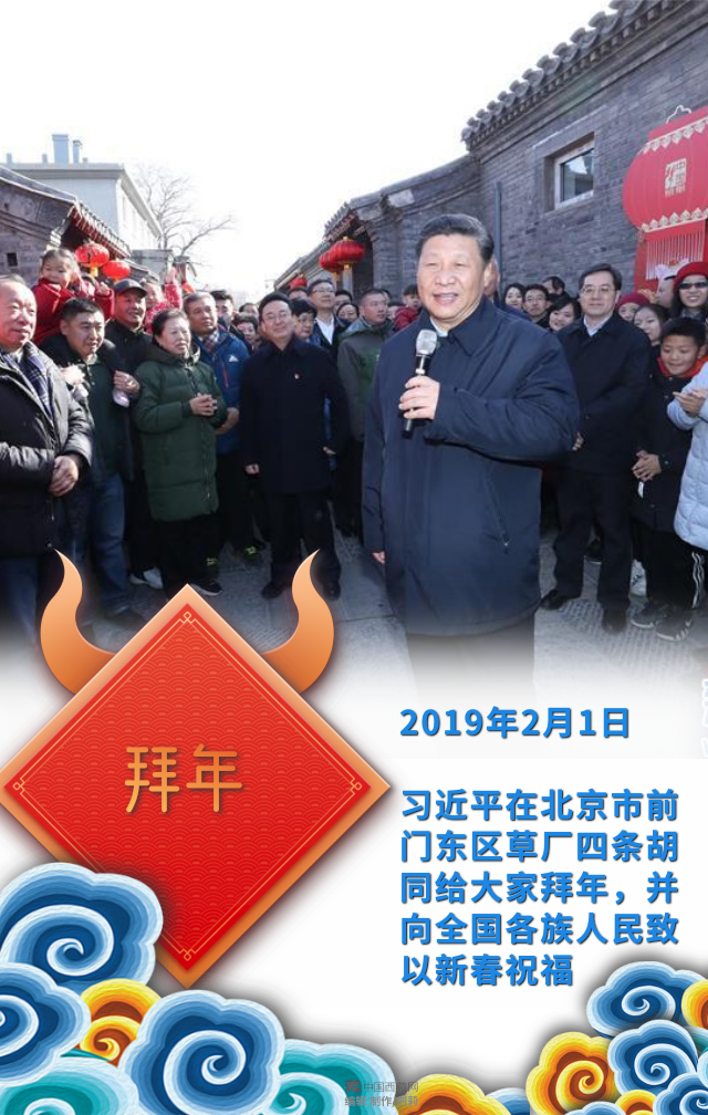 習近平在北京市前門東區(qū)草廠四條胡同給大家拜年,并向全國各族人民致以新春祝福