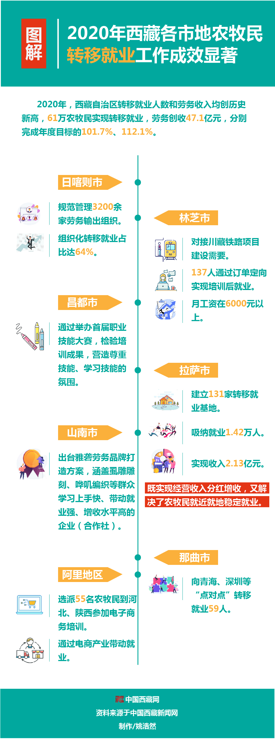圖解|2020年西藏各市地農(nóng)牧民轉(zhuǎn)移就業(yè)工作成效顯著