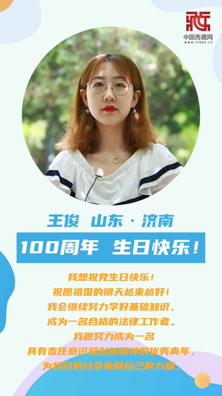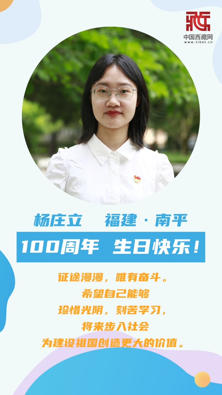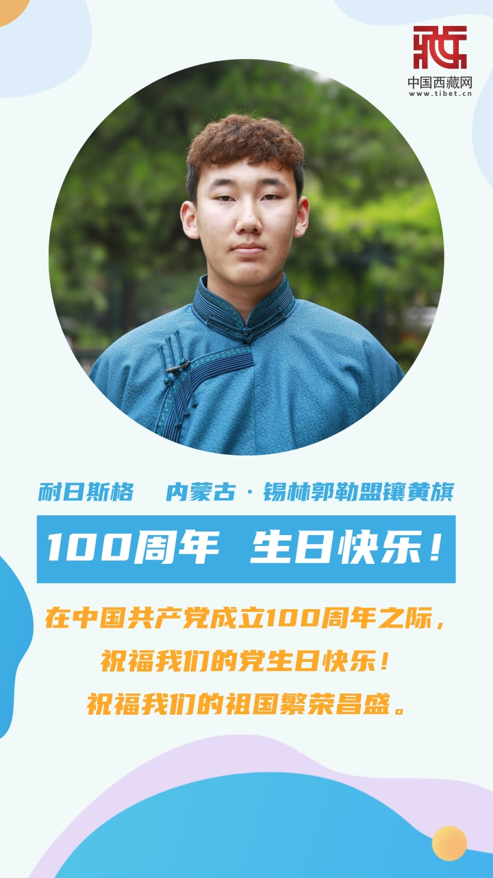 100年前,中國共產(chǎn)黨為苦難深重的中華民族帶來了光明與希望,100年后,中國人民在中國共產(chǎn)黨的帶領(lǐng)下,看到了中華民族偉大復(fù)興的曙光。在中國共產(chǎn)黨成立100周年之際,一起聆聽新時代青年學(xué)子送上的祝福?。ㄖ谱?許娜 編輯/澤仁措姆)