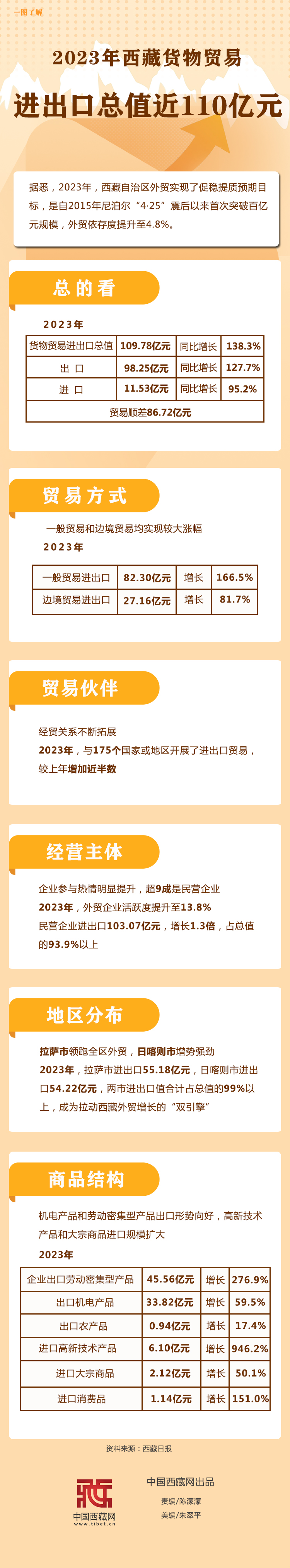 一圖了解:2023年西藏貨物貿(mào)易進出口總值近110億元