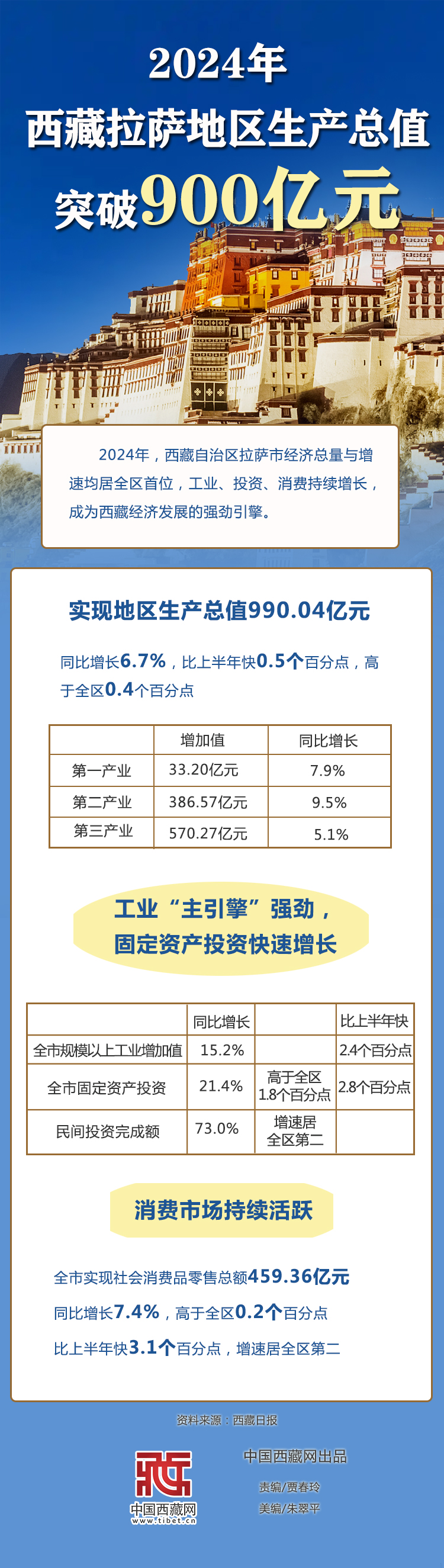 圖解|2024年西藏拉薩地區(qū)生產(chǎn)總值突破900億元