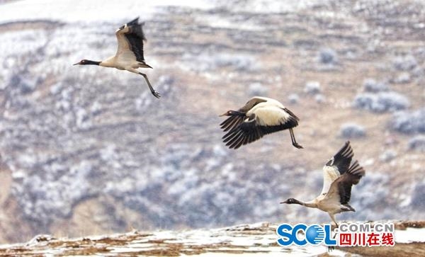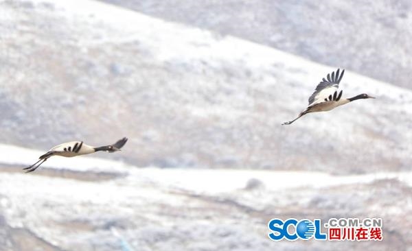 3月16日,在四川省阿壩州紅原縣安曲鎮(zhèn)的草原濕地,到處是雪茫茫的一片,從云南、貴州等地越冬歸來(lái)的一群黑頸鶴在此嬉戲覓食。它們時(shí)而逐嬉鬧,時(shí)而展翅飛翔,與周邊的牦牛、赤麻鴨相映成趣,給沉寂的高原帶來(lái)無(wú)限生機(jī)和活力。