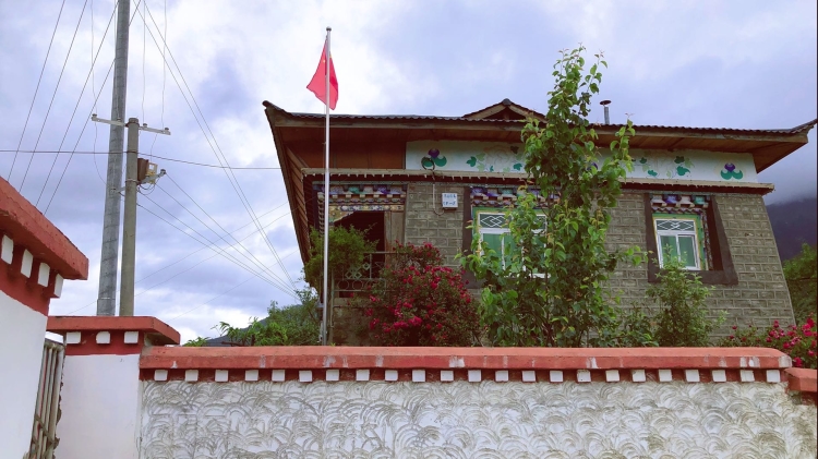 據(jù)色果拉村村支書介紹,色果拉村居民喜愛把鮮艷的五星紅旗插在屋頂,以往由于風沙大,經(jīng)常把插在屋頂?shù)膰齑低?,于是村民自發(fā)在每家每戶門前修建了升旗臺,每到國慶、“七一”等重大節(jié)日,都會舉行升旗儀式。另外,村委會有專門的舊國旗回收箱,用來收納村民家里的舊國旗,村民上交舊國旗可以換取新的國旗。