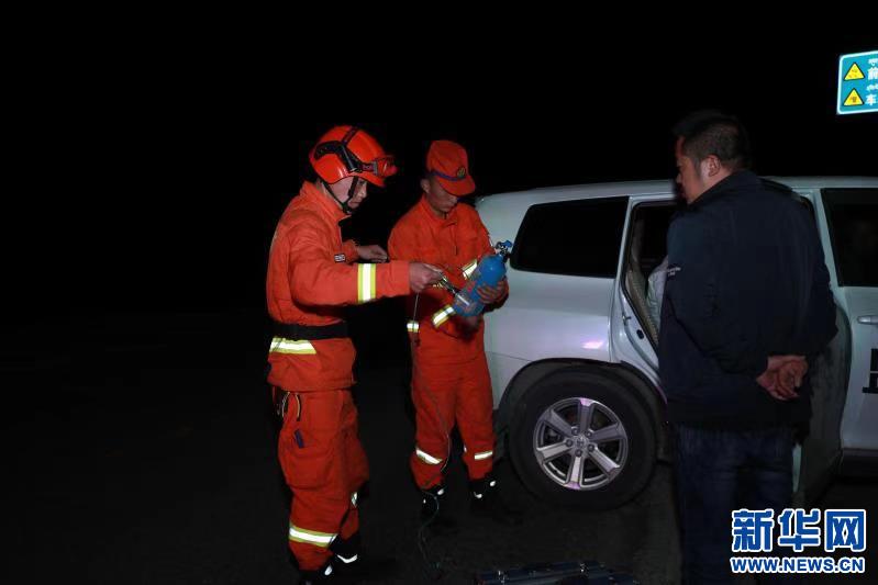 森林消防員為受困群眾提供氧氣瓶。新華社發(fā)(西藏森林消防總隊提供)