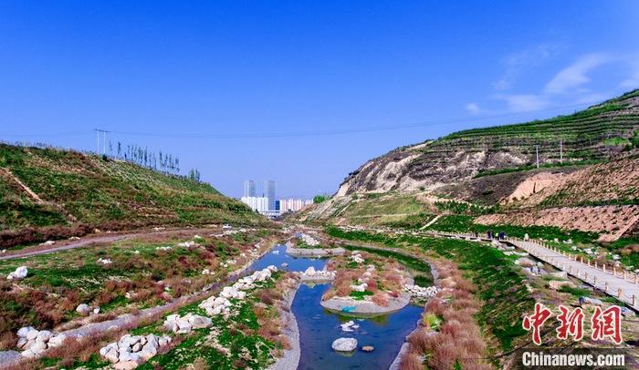 10月12日拍攝的生態(tài)修復(fù)項目治理后的火燒溝,河水清澈見底,溝壑險坡重披綠裝。 中新社記者 孫睿 攝