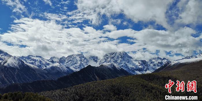 圖為銀白色白馬雪山與綠色植被勾勒生態(tài)畫卷?!∨搜┒?攝
