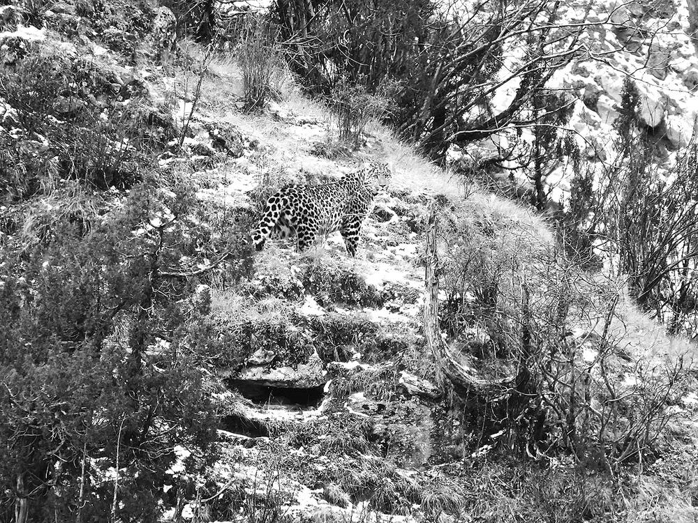 三江源地區(qū)是全球金錢豹種群分布海拔最高的區(qū)域之一,對金錢豹未來保護和科學研究有重要價值。研究表明,該區(qū)域擁有豐富的頂級食肉動物種群,呈現(xiàn)出完整的生態(tài)系統(tǒng)狀態(tài),具有極為重要的保護價值和地位。其中,分布著10只金錢豹個體和43只雪豹個體,以及棕熊、猞猁、狼、豺等多種大型食肉動物。此前,監(jiān)測到金錢豹帶著幼崽的視頻資料,表明金錢豹是實現(xiàn)本地種群繁衍的物種。