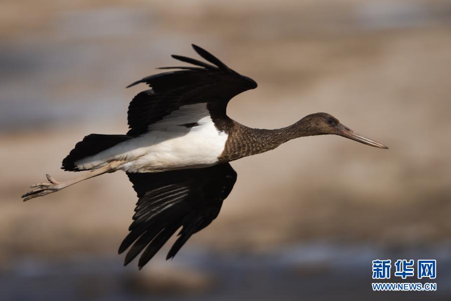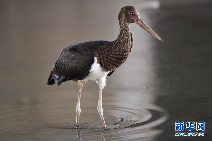 12月6日,一只黑鸛在西寧市北川河濕地公園內(nèi)嬉戲。近日,位于青海省西寧市的北川河濕地公園迎來兩只黑鸛。黑鸛屬鸛形目、鸛科,國家一級保護(hù)動物,目前全世界僅存3000只左右,屬于國寶級珍禽。新華社記者吳剛攝