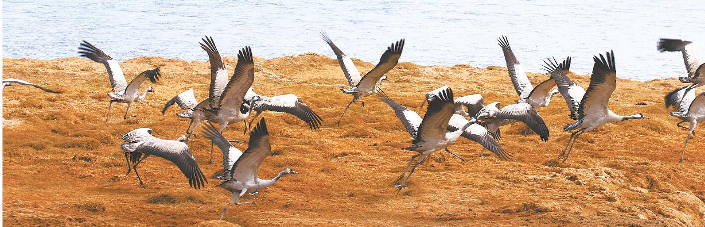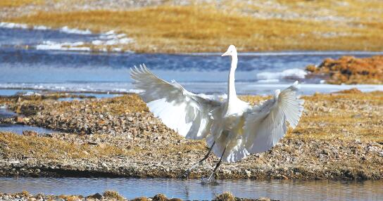 四月中旬的班德湖雪覆冰封,成千上萬(wàn)只斑頭雁棲息在湖心島嶼,它們用喙銜來(lái)草枝、莖葉、干藻、絨羽和碎布,營(yíng)造御寒的巢穴。江源,是鳥(niǎo)類的故園,凍土之上的酷寒之地,成群的雌雁用自己的體溫孵化雛鳥(niǎo),它們啾啾的鳴叫回蕩在無(wú)際的曠野,這傲立天地間的“驚鴻照影”,不由得我們不為之嘆服!