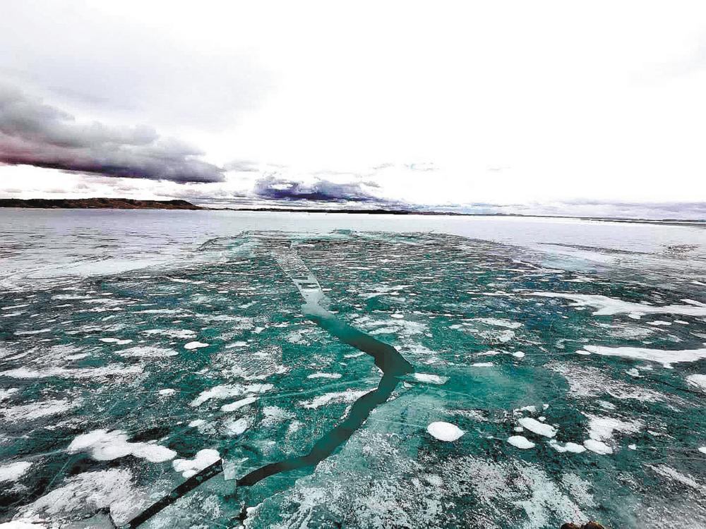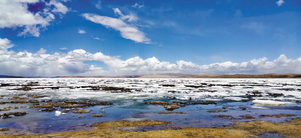 每年4月,鄂陵湖開湖。你能聽到厚厚的冰層斷裂時(shí)的巨大聲響。姚斌 張多鈞攝