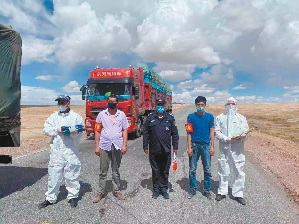 五道梁保護(hù)站的隊(duì)員們攔住過(guò)往車輛,為前往卓乃湖產(chǎn)仔的藏羚羊打開(kāi)生命通道。