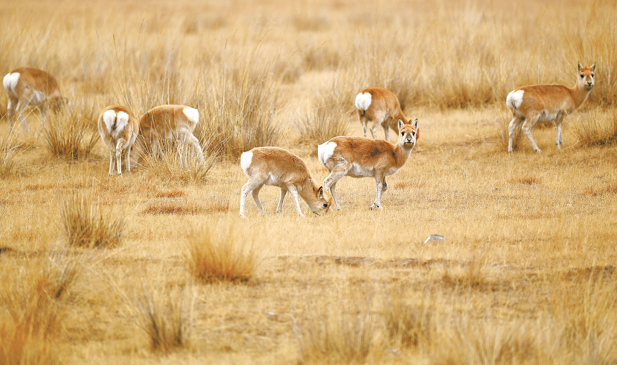 冬日,身姿靈巧的普氏原羚活躍在青海省海北藏族自治州剛察縣哈爾蓋鎮(zhèn)境內(nèi)的草原上,成為一道獨(dú)特的風(fēng)景。普氏原羚是國家一級(jí)保護(hù)動(dòng)物,曾廣泛分布于內(nèi)蒙古、寧夏、甘肅、青海等省區(qū),由于人類活動(dòng)影響及棲息地惡化,目前青海湖環(huán)湖地區(qū)是普氏原羚的唯一棲息地。