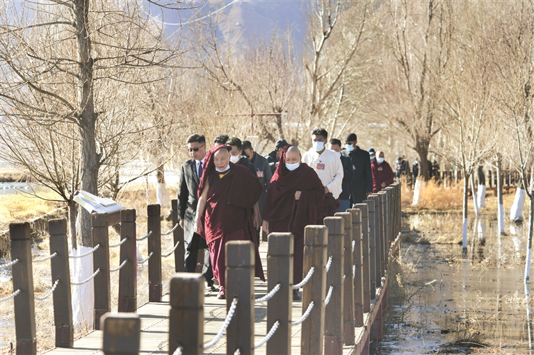 1月10日下午,出席政協(xié)第十一屆拉薩市委員會第六次會議的黨外政協(xié)委員到拉魯濕地自然保護區(qū)參觀考察。
