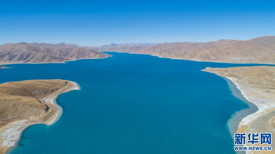 這是1月10日拍攝的羊卓雍錯景色(無人機照片)。新華社記者 孫非 攝