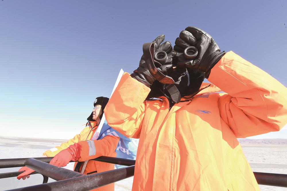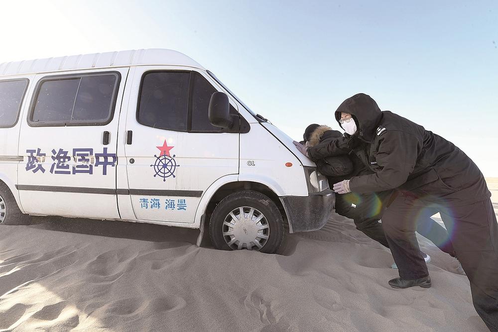 車緩緩駛向青海湖深處,即使穿得這么厚實(shí),但寒風(fēng)襲來時,巡湖隊(duì)員們依舊被凍得直哆嗦。
