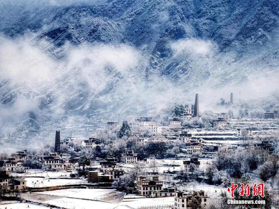 圖為雪后的丹巴甲居藏寨。 降初澤郎 攝