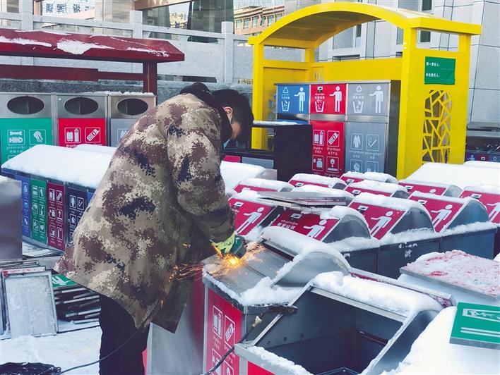 安裝在居民小區(qū)內的垃圾分類投放箱