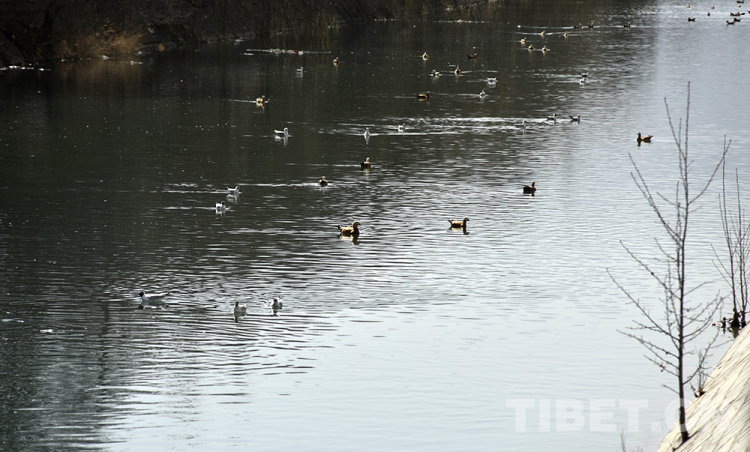 圖為拉薩市太陽(yáng)島附近河面上游弋的水鳥 攝影:王媛媛