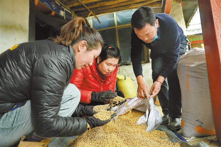 圖為墨竹工卡縣農業(yè)農村局(農業(yè)技術推廣站)工作人員選購青稞種子。洛桑克珠 唐斌 攝