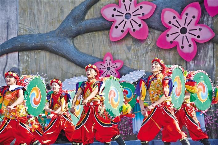 林芝桃花節(jié)開(kāi)幕式上的文藝表演。張猛 王珊 攝