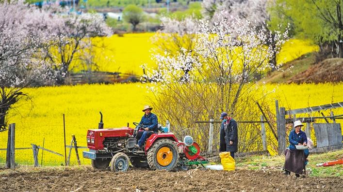 日前,林芝市巴宜區(qū)布久鄉(xiāng)朵當村群眾駕駛農(nóng)用機械犁地,與遠處桃花和油菜花構(gòu)成一幅秀美田園風光圖。