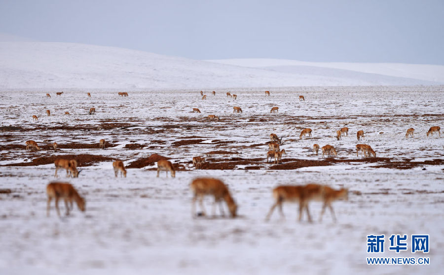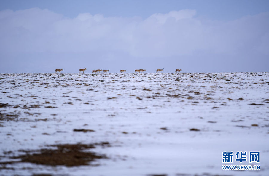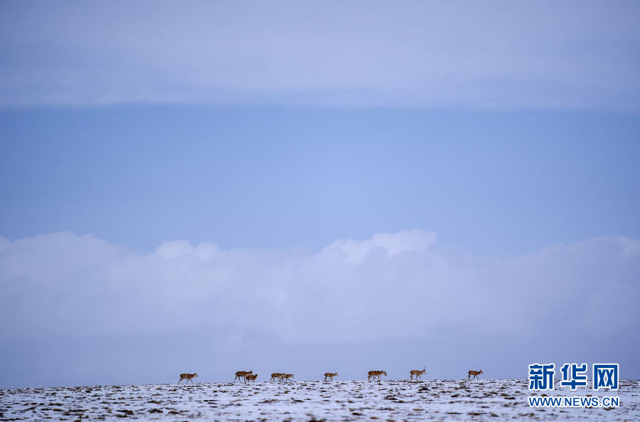 近日,可可西里迎來降雪,大量藏羚羊匯聚在可可西里五道梁地區(qū),踏上遷徙之路。