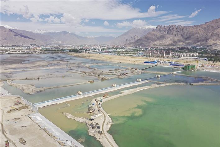 拉薩河河勢(shì)控導(dǎo)工程(濱江花園段)工程技術(shù)部主任劉誠(chéng)介紹,拉薩河河勢(shì)控導(dǎo)工程(濱江花園段)由中國(guó)水電基礎(chǔ)局承建,總投資4.4億元,壩址位于拉薩河城區(qū)段。該工程于2020年5月25日進(jìn)行開工準(zhǔn)備,9月2日正式開始主體工程施工任務(wù)。工程屬于拉薩河城區(qū)段自下而上的第一座攔河蓄水建筑物,位于2#閘下游約1.635千米。工程包括氣盾壩、調(diào)節(jié)閘、導(dǎo)流墻、魚道和充排氣泵房等部分。