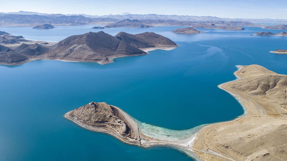 這是西藏羊卓雍錯(cuò)景色(2021年1月10日攝,無人機(jī)照片)。
