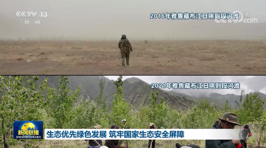 雅魯藏布江是我國最長的高原河流,也被譽(yù)為西藏人民的“母親河”。而受到高原氣候、地質(zhì)等環(huán)境影響,雅江流域曾出現(xiàn)過河灘荒漠化的情況。眼前這兩張照片拍攝于雅江上游河灘的同一位置,五年的時(shí)間,荒漠變成森林,讓拍攝者次仁歐珠感慨不已。