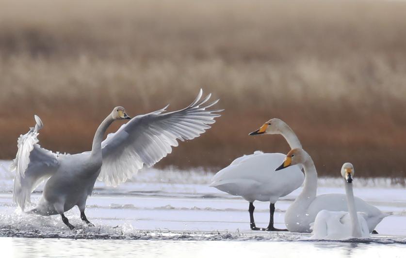 連日來,成群的野生大天鵝陸續(xù)飛臨四川省阿壩州若爾蓋縣高原小鎮(zhèn)麥溪鄉(xiāng)的洛賈瓊果河棲息越冬。[詳細]