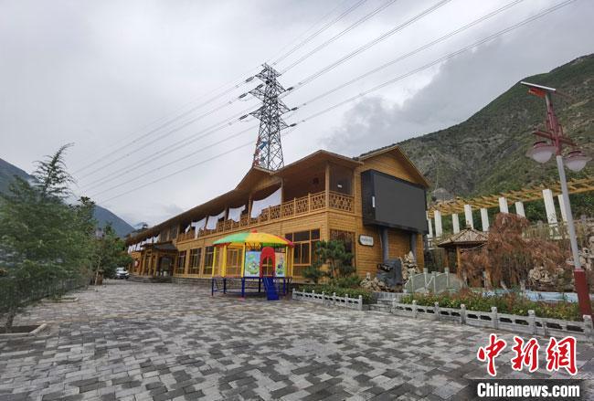 沿著村道蜿蜒而上,數(shù)十間采用藏族傳統(tǒng)木制結(jié)構(gòu)建筑與裝飾的房屋造型精致,環(huán)境典雅。這些房屋采用當(dāng)?shù)貍鹘y(tǒng)的石頭建筑形制,木屋用繁花綠樹做視野上的隔斷,又用十六座小橋彼此連通,似隔非隔,似連非連,既自成一體,又融會(huì)貫通,兼之流水潺潺,呈現(xiàn)出一派舒適宜人的田園畫卷。