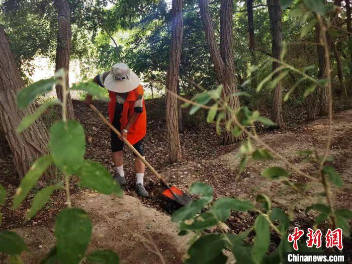 圖為護(hù)林員清理雜草?!∈缝o靜 攝