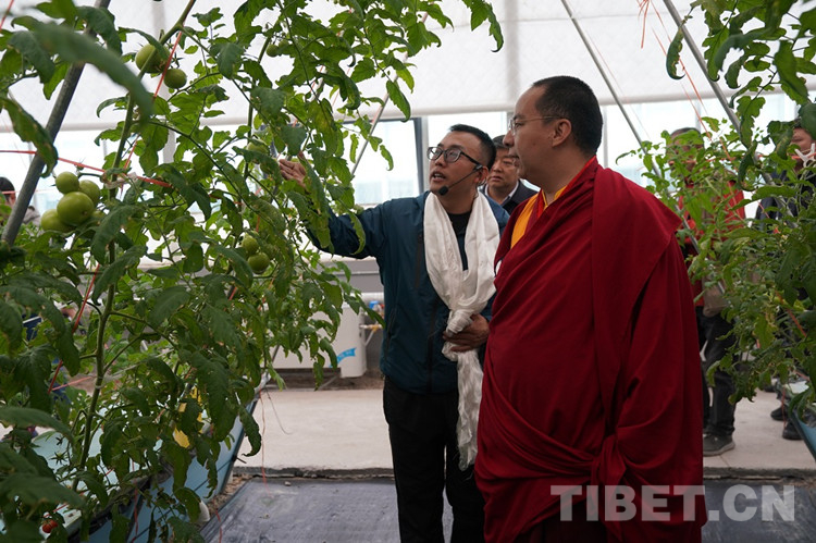 班禪走入蔬菜園、花卉園、熱帶植物園等溫室園區(qū),不時(shí)俯身仔細(xì)查看農(nóng)作物長(zhǎng)勢(shì)。得知溫室內(nèi)竟種有百香果,班禪高興地說道:“百香果可是熱帶植物,能在那曲海拔這么高的地方種出來,很不容易!”在蔬菜園,班禪打開種植擋板,聽取無土栽培種植技術(shù)介紹,詳細(xì)詢問營養(yǎng)液噴灑時(shí)間、頻率等情況,點(diǎn)頭表示肯定。