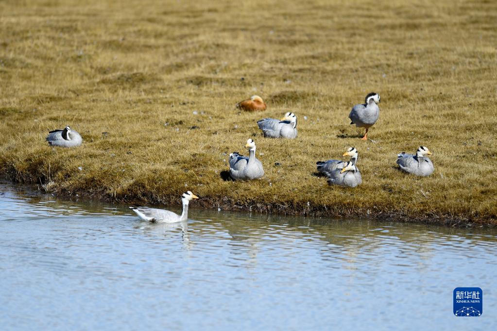這是10月19日在三江源國家公園黃河源園區(qū)內(nèi)拍攝的一群斑頭雁。新華社記者 李占軼 攝
