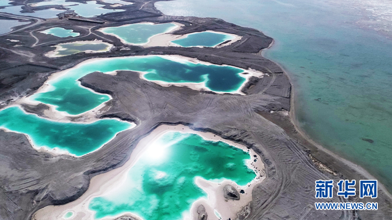 海西蒙古族藏族自治州翡翠湖景色(無(wú)人機(jī)照片)。新華網(wǎng) 潘彬彬 攝