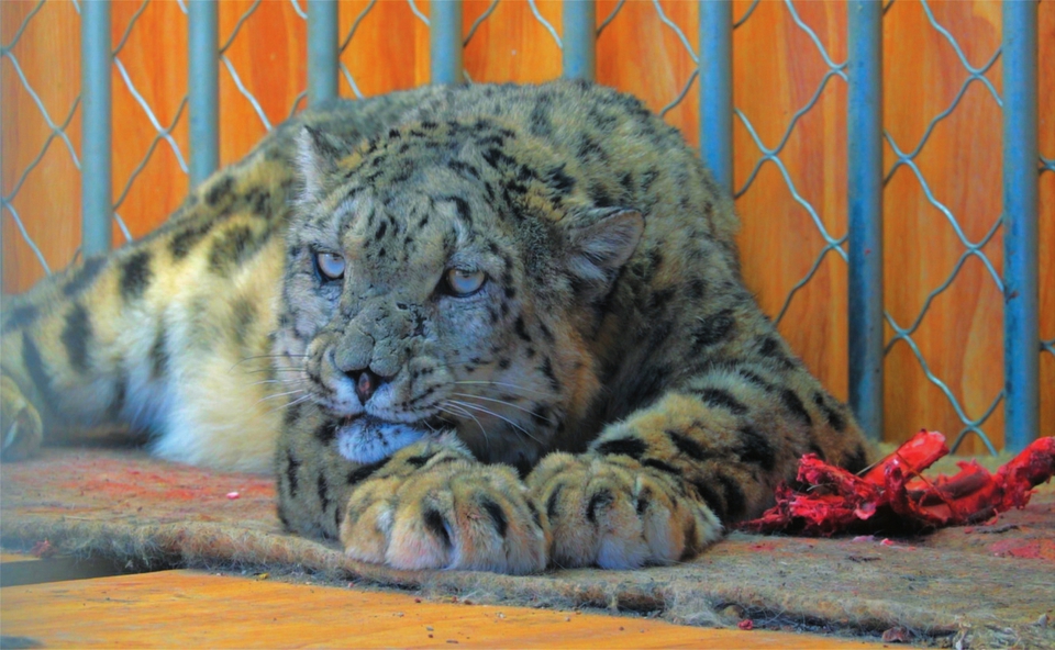 根呷告訴記者,當(dāng)年雪豹傷愈后曾被放歸山林,但他們觀察發(fā)現(xiàn),它已經(jīng)失去了野外生存的能力,“它的野性依然存在,但沒法捕獵了。這是一只老年雪豹,牙齒已經(jīng)被磨平了,按人的年齡推斷,可能相當(dāng)于七八十歲的老人?!?/p>