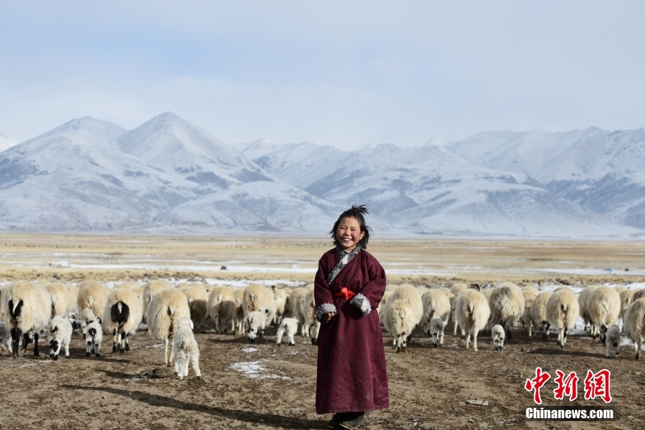 1月27日,當(dāng)雄縣龍仁鄉(xiāng)烏達(dá)村放牧的小姑娘。當(dāng)雄縣位于西藏自治區(qū)拉薩市北部,距拉薩市區(qū)170公里?!爱?dāng)雄”,藏語意為“天選牧場”,平均海拔約4200米,草場廣闊,土地肥沃。 中新社記者 貢嘎來松 攝