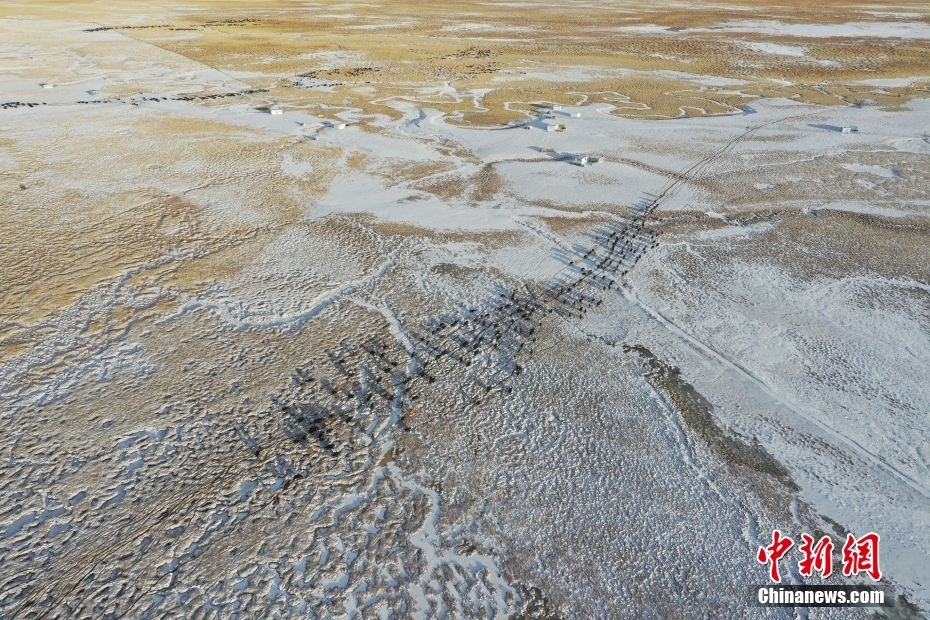1月27日,當(dāng)雄縣龍仁鄉(xiāng)附近牧場。當(dāng)雄縣位于西藏自治區(qū)拉薩市北部,距拉薩市區(qū)170公里?!爱?dāng)雄”,藏語意為“天選牧場”,平均海拔約4200米,草場廣闊,土地肥沃。(無人機(jī)照片) 中新社記者 貢嘎來松 攝