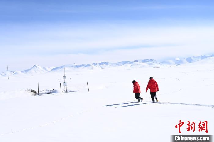 緩慢行駛過雪路,抵達納木錯鄉(xiāng),中新社記者與中科院納木錯多圈層綜合觀測研究站(西藏納木錯高寒湖泊與環(huán)境國家野外科學觀測研究站,簡稱納木錯站)的兩位觀測員匯合。