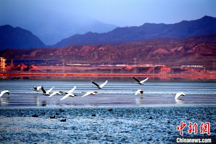 圖為柴達木盆地都蘭湖的大天鵝?!跆m縣委宣傳部 供圖