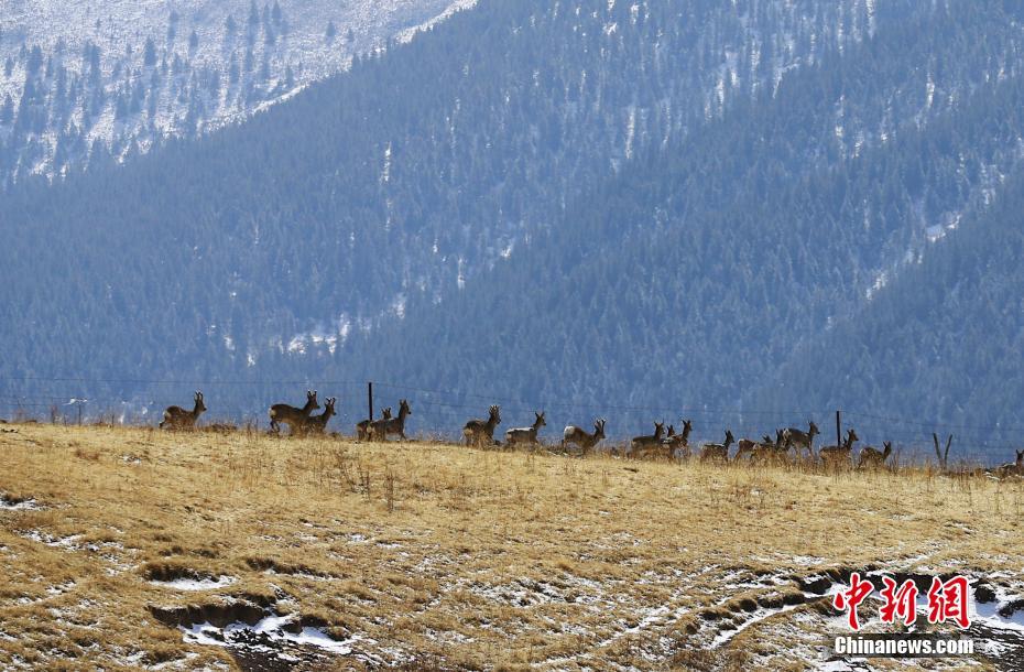 3月16日,成群的矮鹿在青海省海北藏族自治州祁連山國家公園青海片區(qū)草場上嬉戲。祁連山國家公園地處中國青海、甘肅兩省交界,總面積5.02萬平方千米,其中青海片區(qū)1.58萬平方千米。近年來,隨著當?shù)厣鷳B(tài)環(huán)境持續(xù)改善,祁連山國家公園青海片區(qū)珍稀野生動物種群數(shù)量不斷增加。 中新社記者 馬銘言 攝